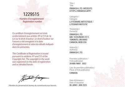 Onwash Receives Copyright Certification in January 2025